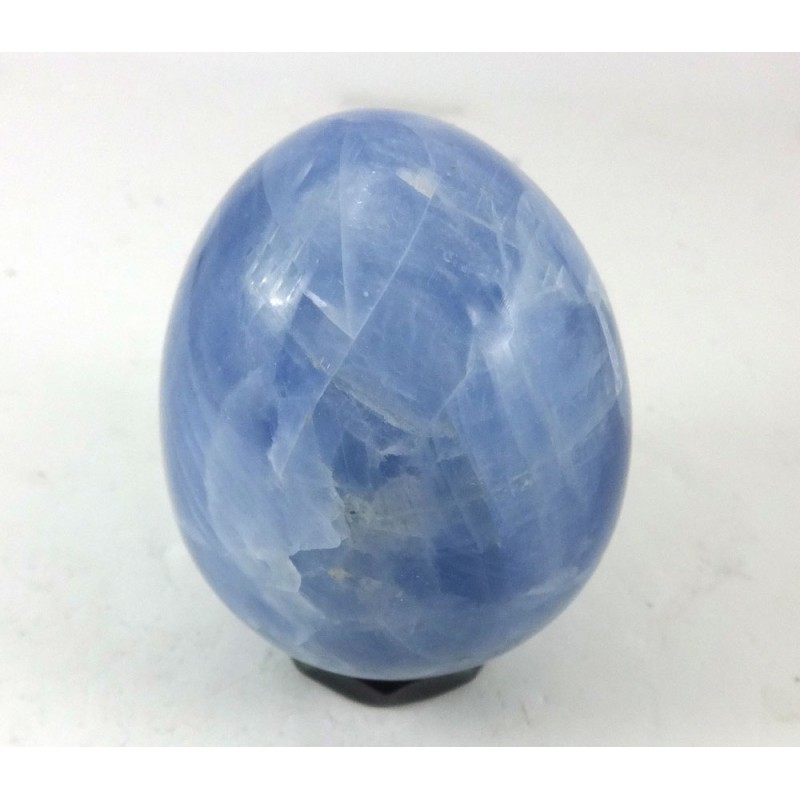 Top grade blue calcite, hand polished into an egg from Madagascar.