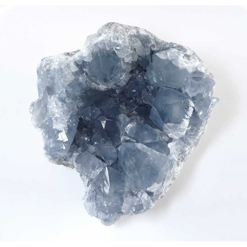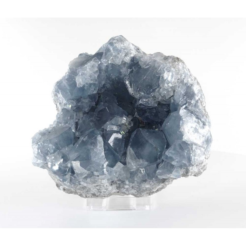 Top grade Collector specimen of a natural rough Celestite open geode, with beautiful well preserved mixed sizes sparkly semi translucent deep blue, some Diamond shape crystals and some with Multi-Terminations. Plastic stand included. Location: NW. coast of Madagascar.