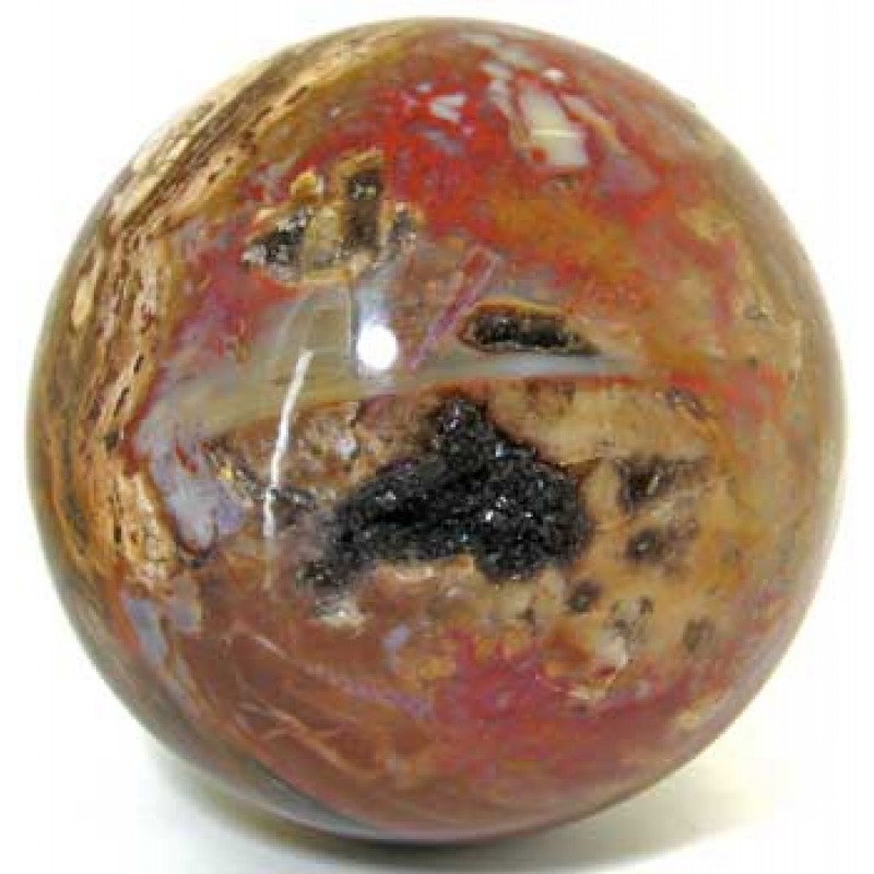 Size: Diameter = 10.7 cm Weight: 1.8 Kg Top grade deep Red Madagascan Petrified Wood polished Sphere, with natural Crystals geodes.