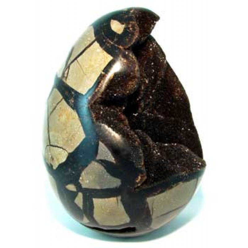 Sizes: H = 12.8 cm W = 9.0 cm This top grade display piece is carved from a fossilzed Septarian nodule. The black parts are Aragonite. The grayish brown parts are Limestone. Formed 50~70 million years ago. From Madagascar.