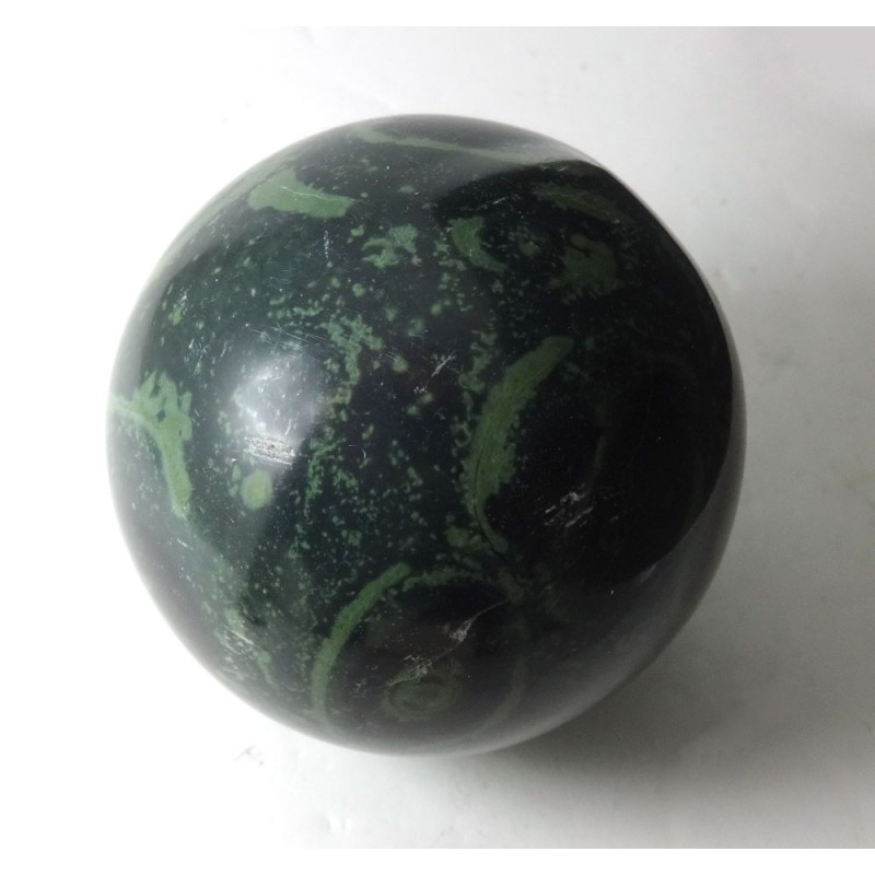 Nice grade kambaba sphere, green and black patterned, hand polished in our workshop from Madagascar.