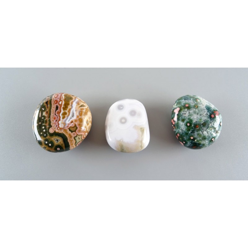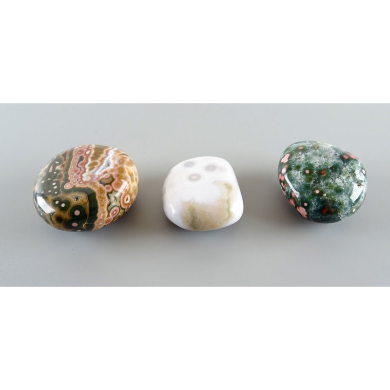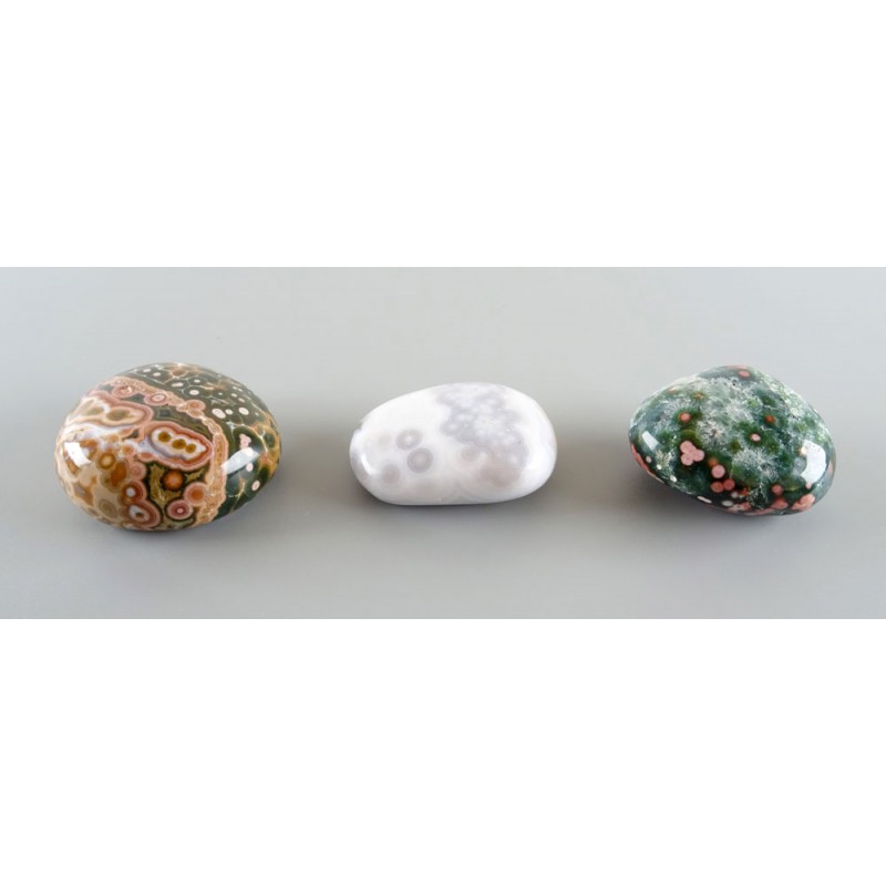 SET of 3 Superb Orbicular Jasper Polished Pebbles