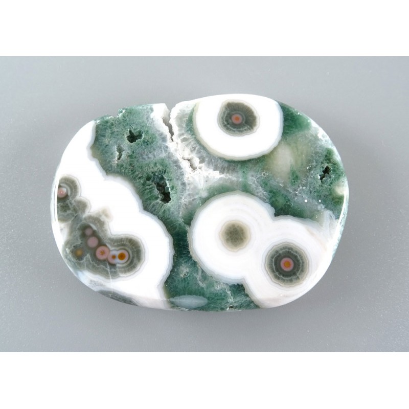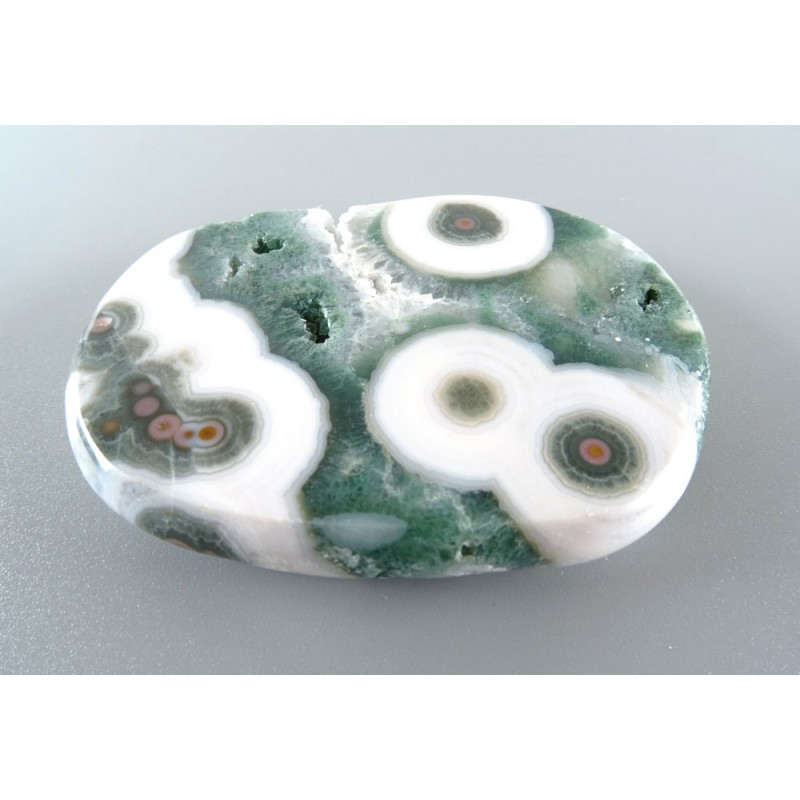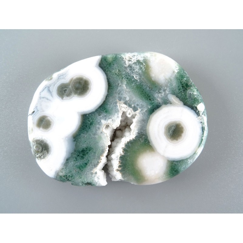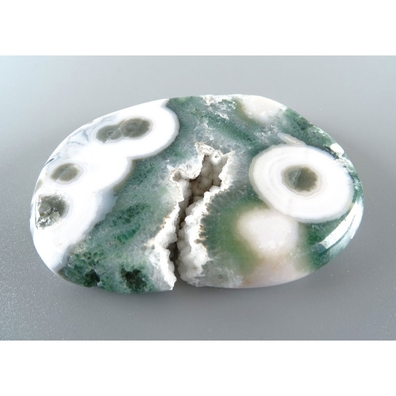 A fantastic Ocean Jasper specimen with an open druzy geode, skillfully handcrafted into a Disc.