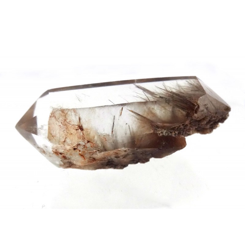 Beautiful part polished quartz point with silver rutile (Angel hair) inclusions inside.