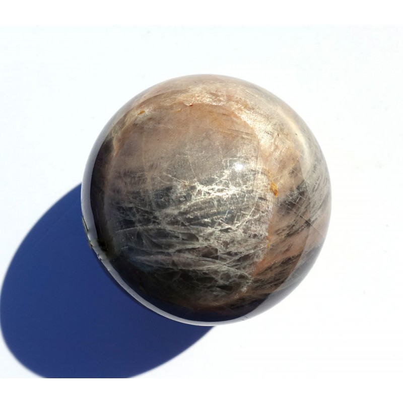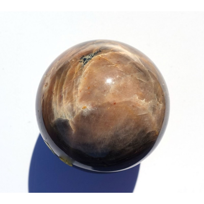 Polished black moonstone sphere with nice lustre. From Madagascar.