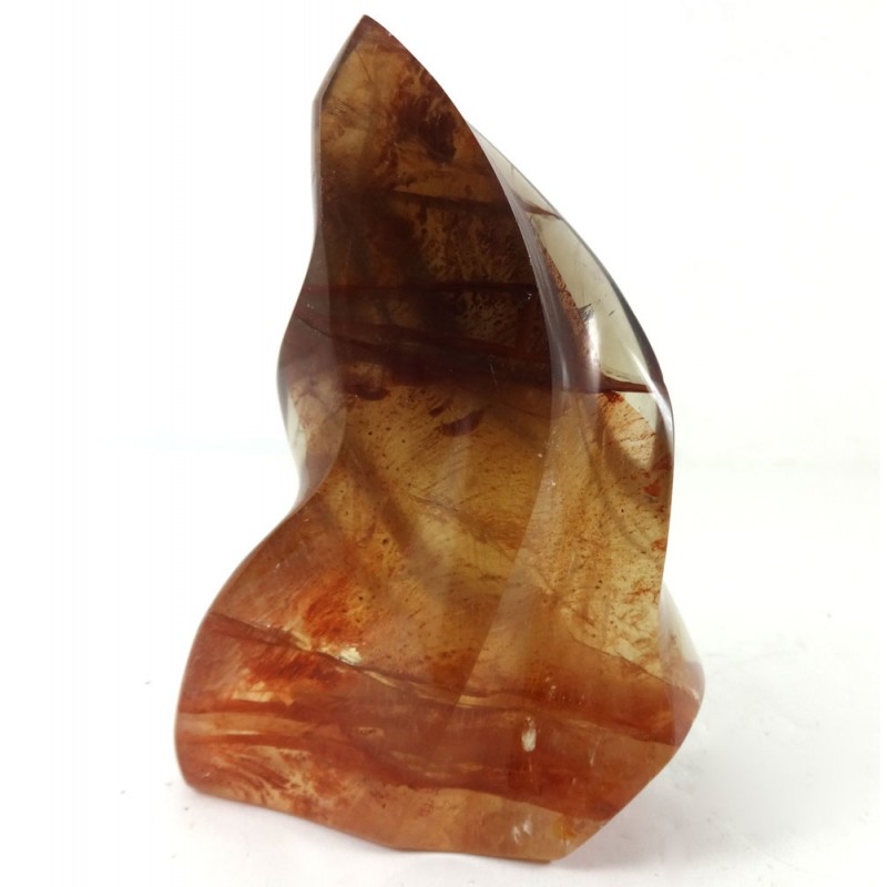 Size: H = 9.3 cm W = 6.6 cm D = 2.7 cm Top grade deep red carved Hematite Quartz flame point. From Madagascar.