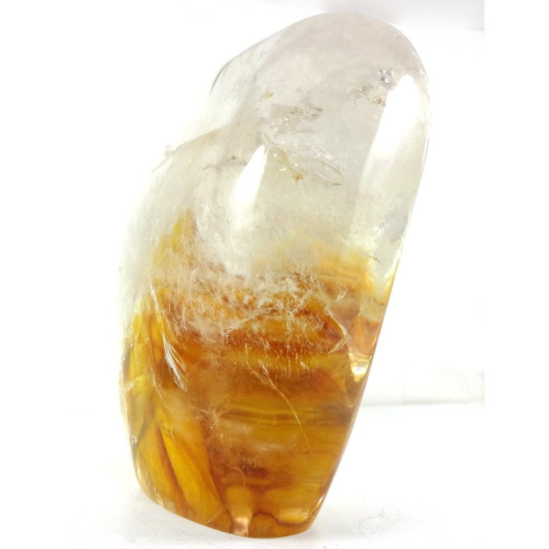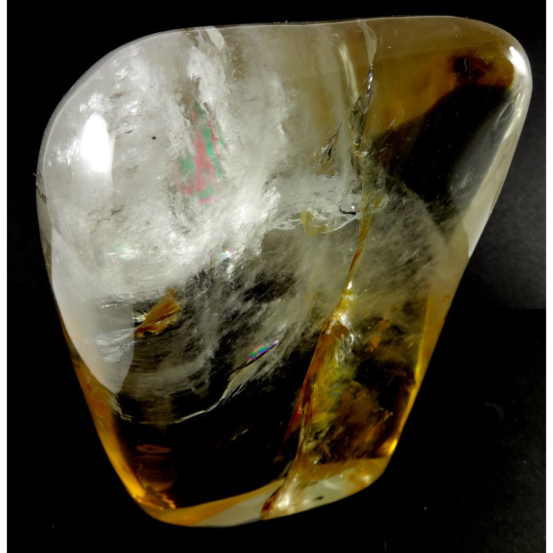 Size H = 12.2 cm W = 9.8 cm D4.3 cm Beautiful polished river rolled quartz, clear with iron inclusions and rainbows From Madagascar.