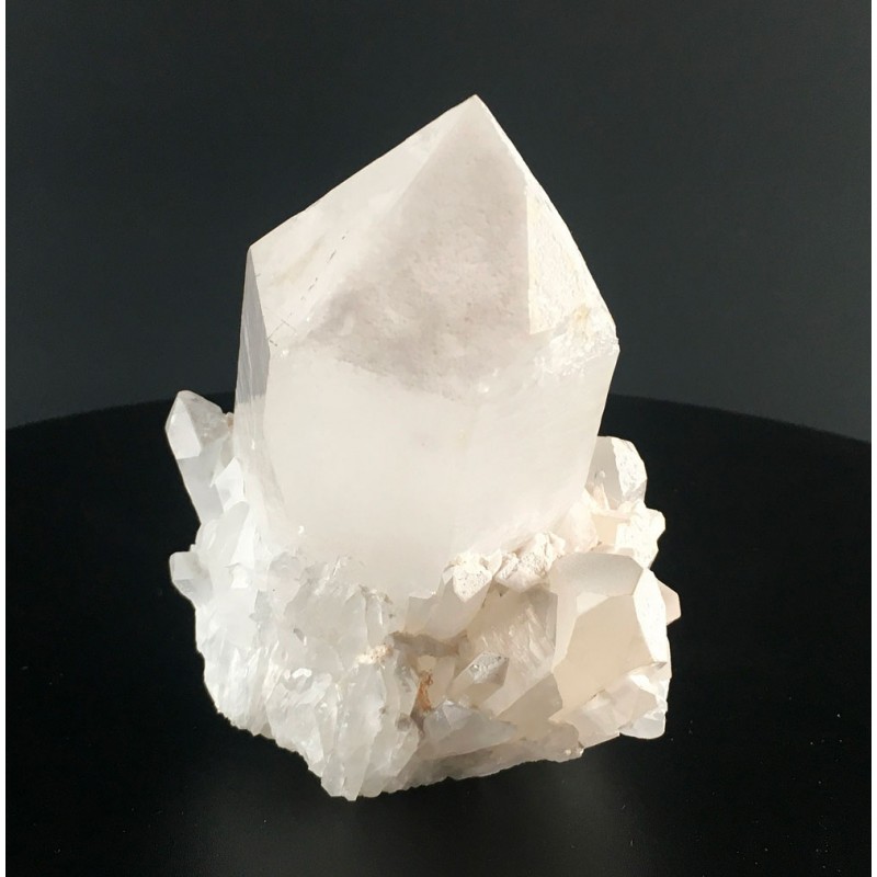 An unique and beautiful Self standing Candle Quartz Cluster circled round at the base with a belt of Double Terminated crystals.